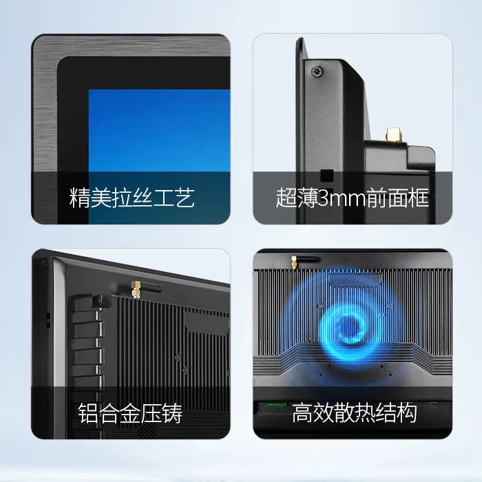 C款嵌入式系列安卓工業(yè)一體機,前面板采用拉絲工藝,整機外觀精美,高精度鋁合金結(jié)構(gòu),具有耐高溫、防腐蝕、抗壓擊性能,機身采用全封閉式,無風(fēng)扇設(shè)計,高效散熱。前面框厚度僅為3mm,嵌入式配套應(yīng)用,可完美貼合各類機柜。