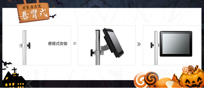 第三招:骷髏“懸臂式”。 在懸掛式的基礎(chǔ)上,配合合適的安裝臂,讓用戶可根據(jù)使用需求能,可將工業(yè)平板電腦隨意停留在任何位置,方便使用者觀看,這類方式一般用于小型,中型,大型設(shè)備中。同時(shí),在生產(chǎn)流水線上的需求也比較大。